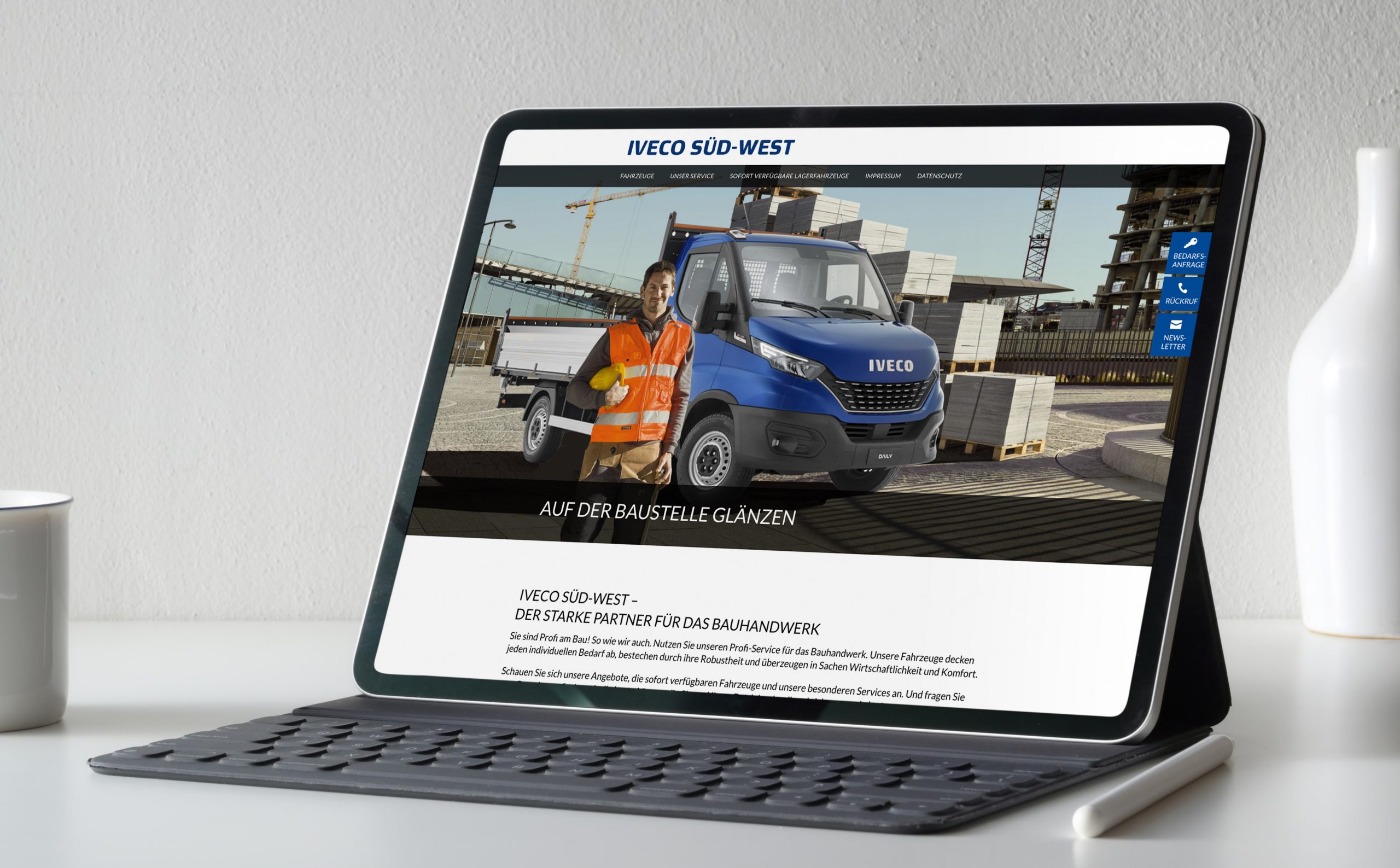 2018 startete der Nutzfahrzeughersteller die ersten Online-Marketing-Kampagnen mit uns. Heute gilt Iveco Süd-West als Vorreiter unter den deutschen Standorten. Konzentriert auf die Baubranche lieferten unsere Kampagnen von Anfang an sehr gute Ergebnisse, ob über Google Ads, Facebook oder Instagram. Und das Schöne am Online Marketing: alle Zahlen lassen sich monatlich schwarz auf weiß belegen.