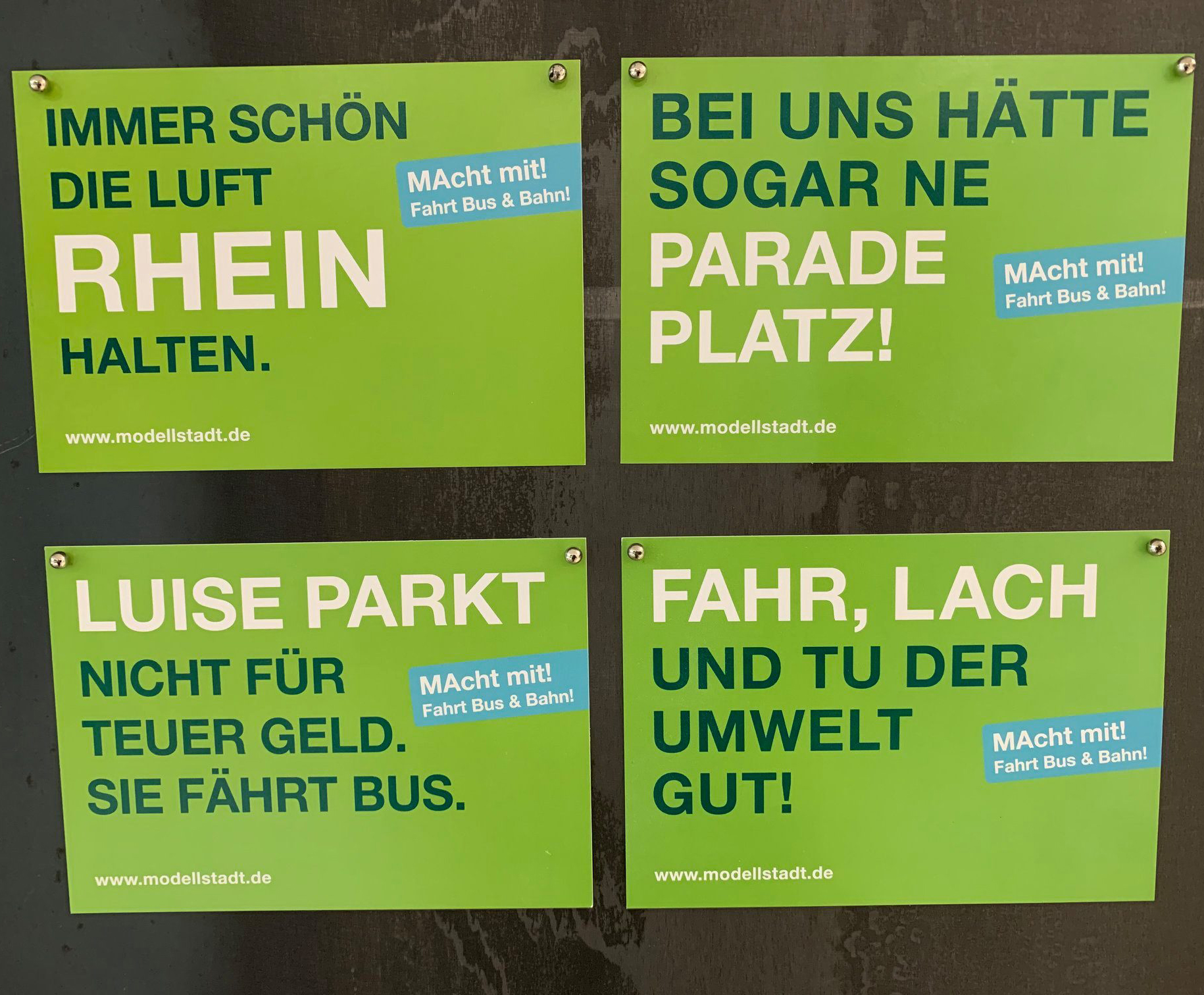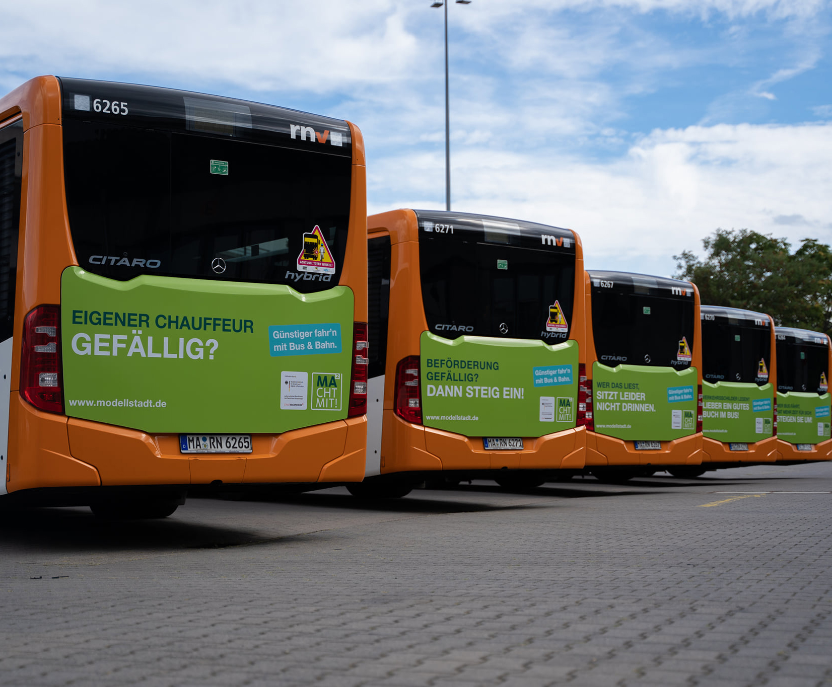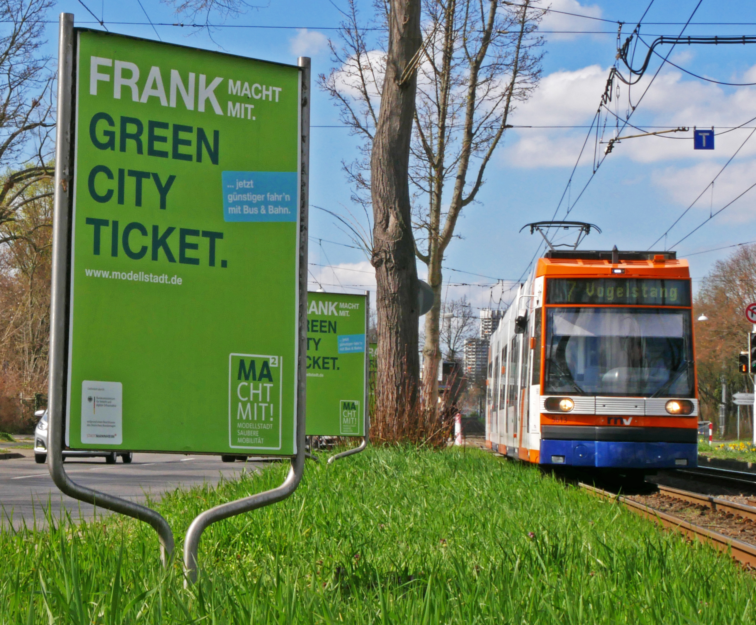 Mannheim ist die Wiege von Fahrrad und Automobil. Aber die Stadt will auch die Zukunft der Mobilität prägen. Als eine von bundesweit fünf Modellstädten treibt Mannheim die Mobilitätswende voran und wird verbessert mit neuen Ideen nachhaltig die Luftqualität. Die Idee zur begleitenden, integrierten Aufklärungs- und Motivations-Kampagne stammt von uns.